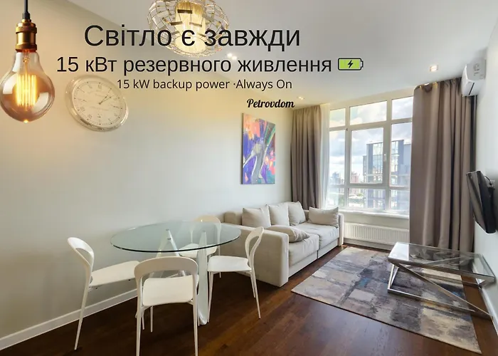 Situated only a 10-minute stroll from Palats Ukraina underground station, 20-277 Central Park, John Mccain 7, Kyiv Centre, Fantastic City View, 15 Kw Backup Power, Petrovdom Apartment offers Wi-Fi for business or leisure needs. The recreational Hydropark is 4.5 km from the apartment while the Grishko National Botanical Garden is 2.3 km away.